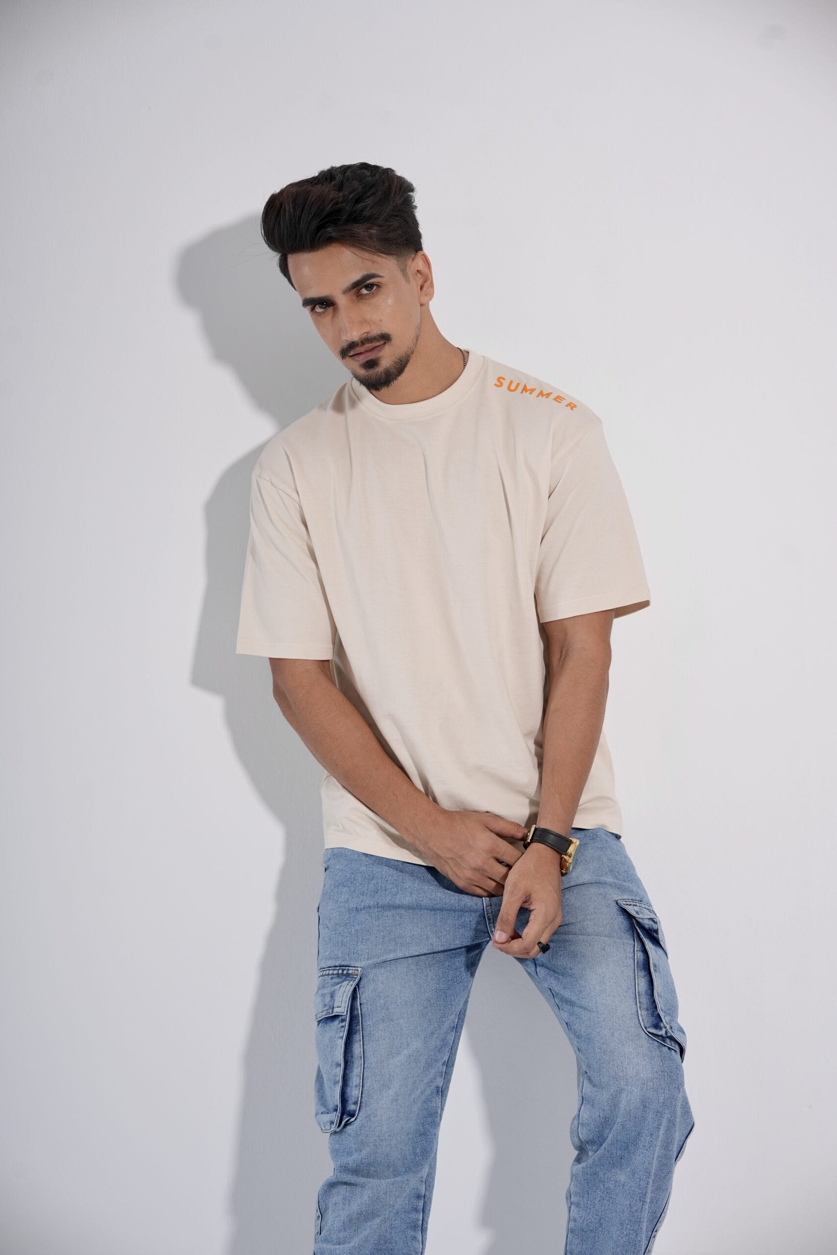 The Summer off white Drop-Shoulder T-Shirt is your go-to for breezy days, sunset hangs, and laid-back summer style—reach for it again and again.