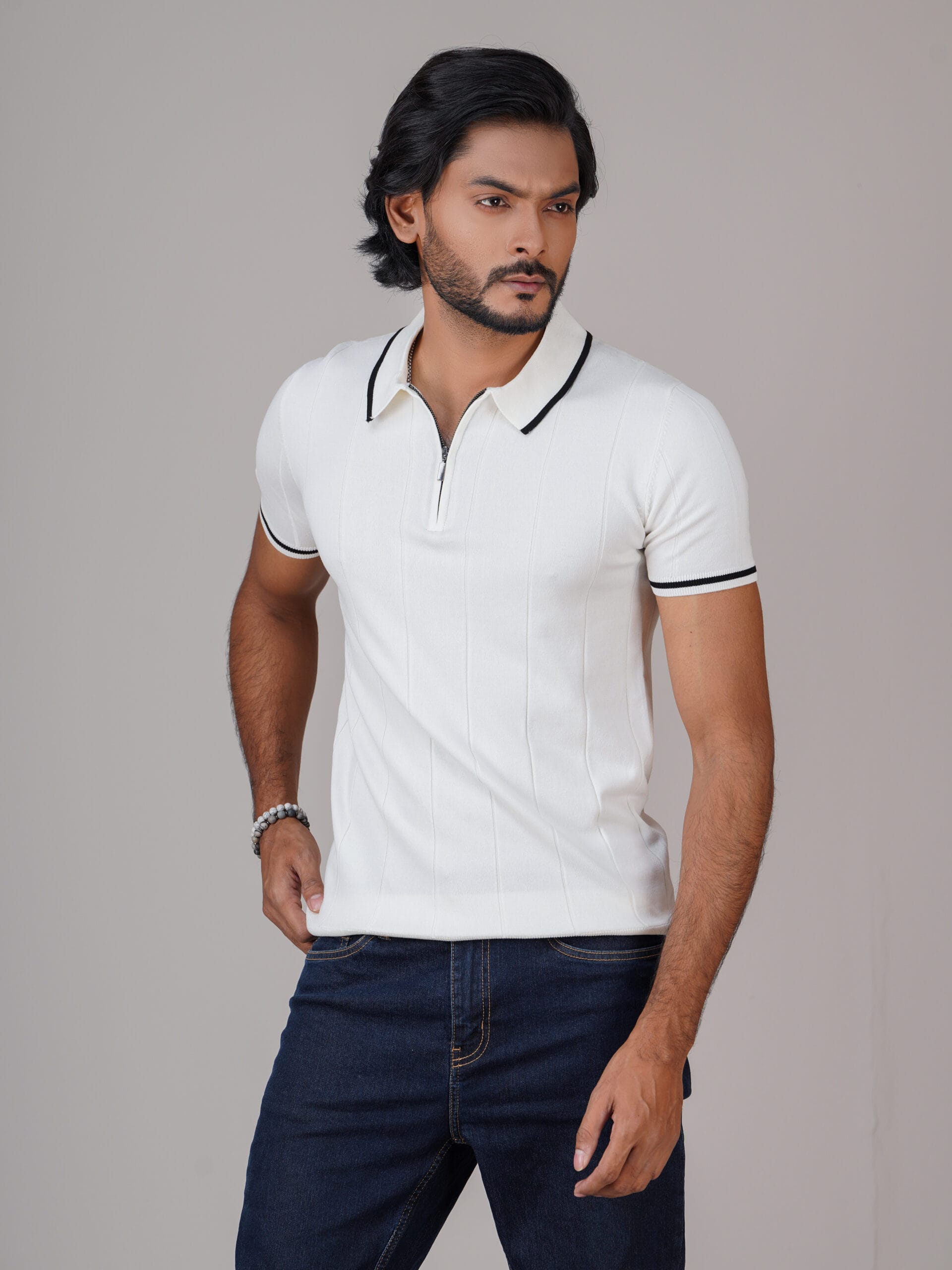 Ready to rock that crisp white look? Grab your Valor White Premium Knit Polo now at Posh Palace!