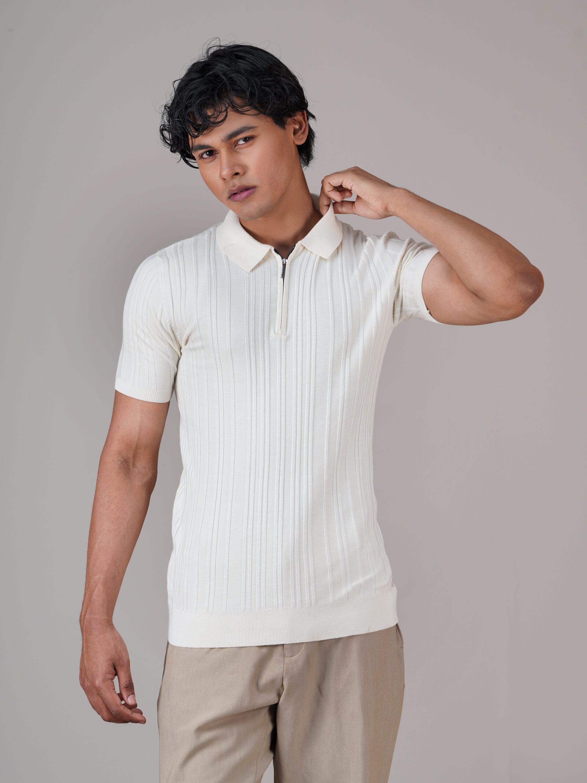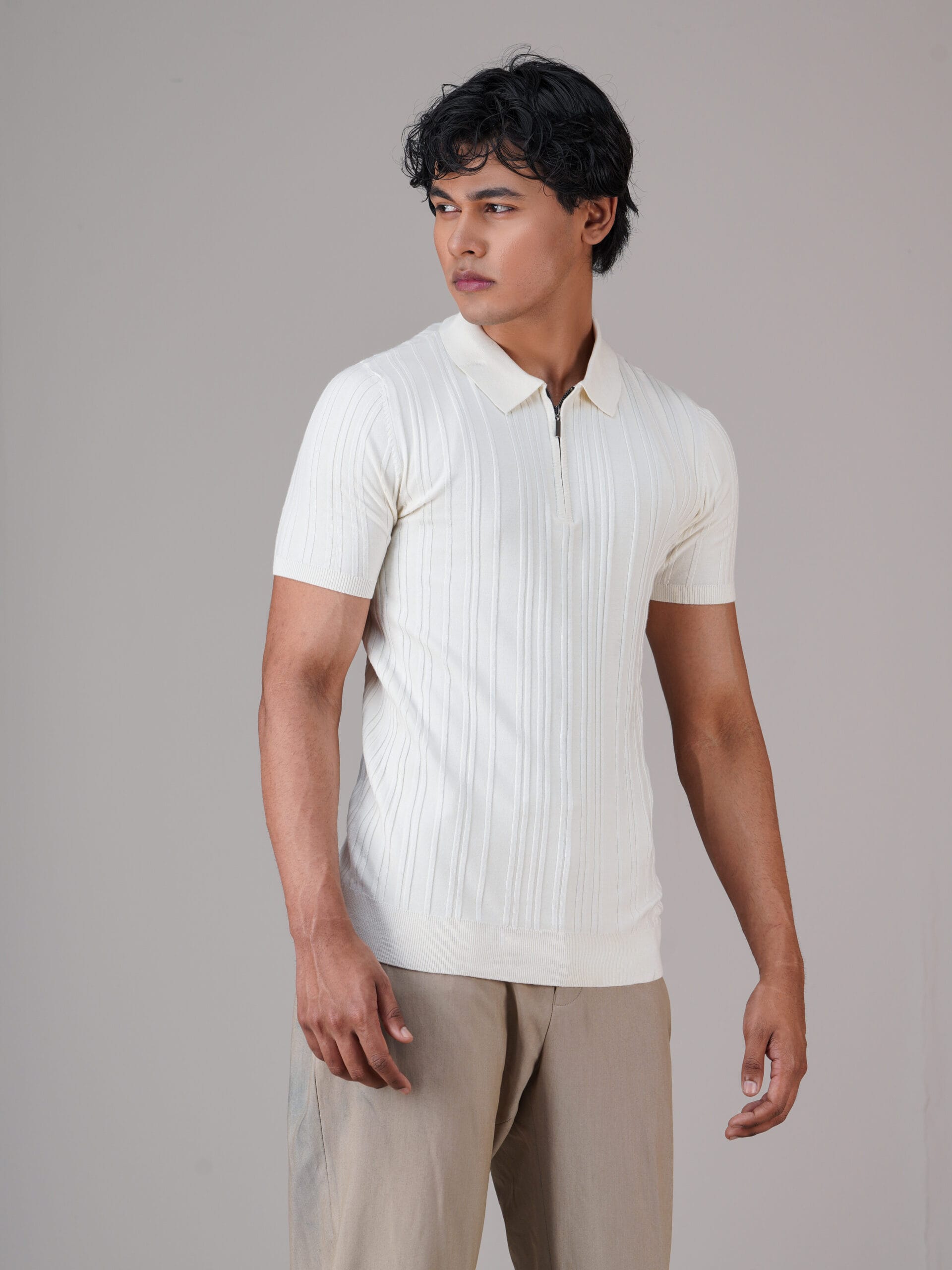 Elevate your warm-weather wardrobe with the White Luxe Premium Knit Polo Shirt from Posh Palace—where luxury meets laid-back comfort.